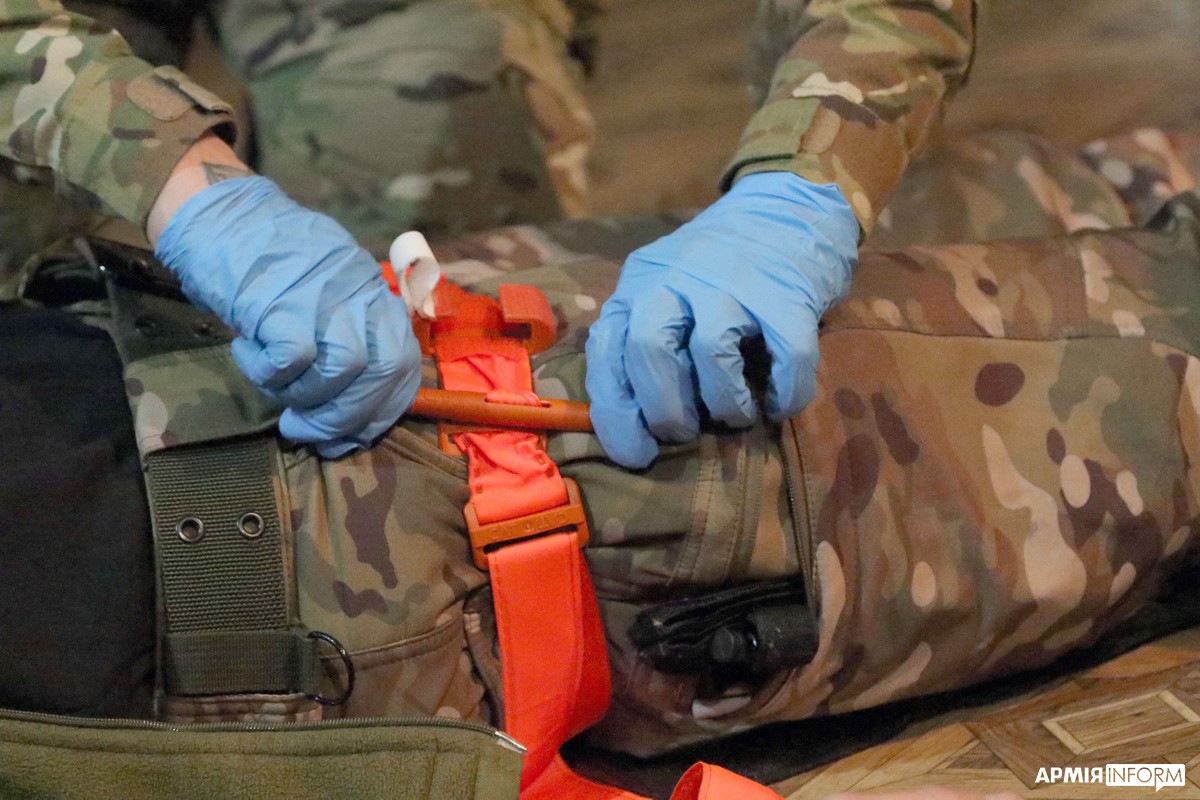 — При собі необхідно мати мінімум три якісні турнікети. Обов’язково в аптечці має бути бандаж, пластир, трахеостомічна трубка, кровоспинні засоби тощо. Крім того, під час роботи з ранами всі маніпуляції треба проводити виключно в медичних рукавичках, — наголошує бойовий медик.