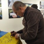— На жаль, я не можу зараз показати обличчя тих людей, яких знімав. Найбільше мене вразило у наших захисниках те, що ні у кого я не помітив злобу. Їхні очі горять вірою в перемогу. Я завжди вожу з собою прапор, котрий підписали наші бійці. Це мій талісман, який поповнюється новими написами. Також тут є ще один прапор, котрий можуть підписати усі охочі, — говорить Борис Бухман.