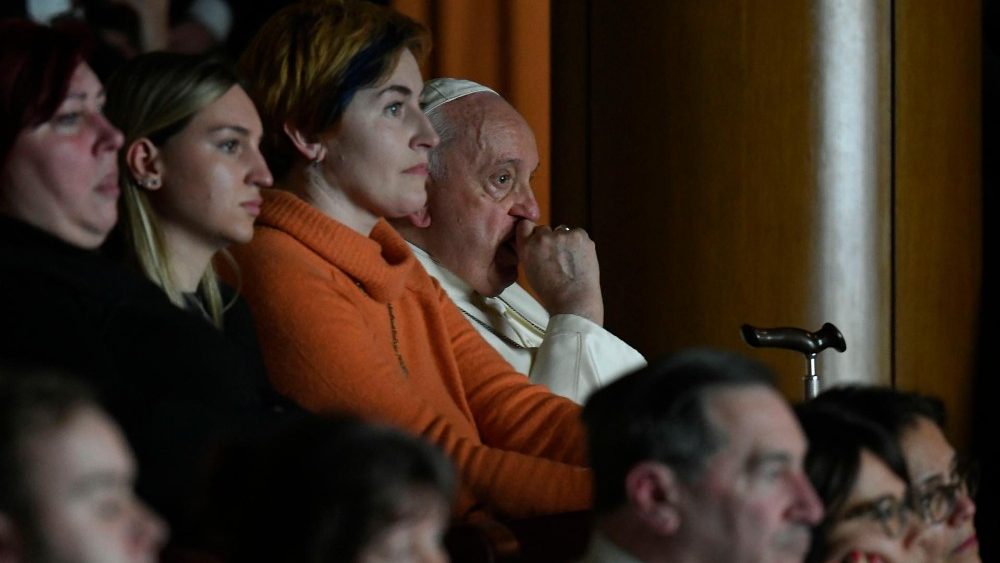 «Скеровуймо погляд до України, молімося за Україну, впустімо в наше серце біль. Ми не повинні соромитися страждати і плакати, бо війна — це знищення, війна — це завжди крок назад», — сказав розчулений Папа після перегляду і закликав помолитися разом.