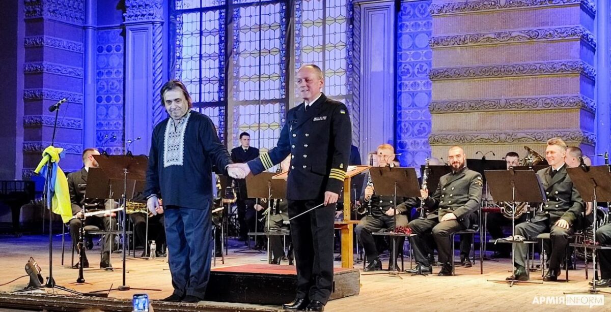 В Одесі до річниці початку широкомасштабного російського вторгнення відбувся концерт за участю оркестру Центру військово-музичного мистецтва ВМС ЗСУ та уродженця Одеси, канадського композитора українського походження Юліана Мілкіса.