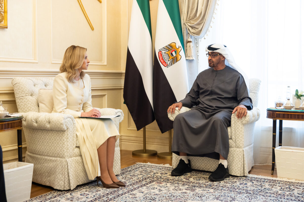 Під час зустрічі з Президентом ОАЕ шейхом Мухаммадом бін Заїдом Аль Нагаяном Олена Зеленська мала нагоду особисто подякувати йому та еміратському народові за надзвичайно важливу й цінну гуманітарну допомогу, надану українцям у важкі часи відбиття російської агресії.