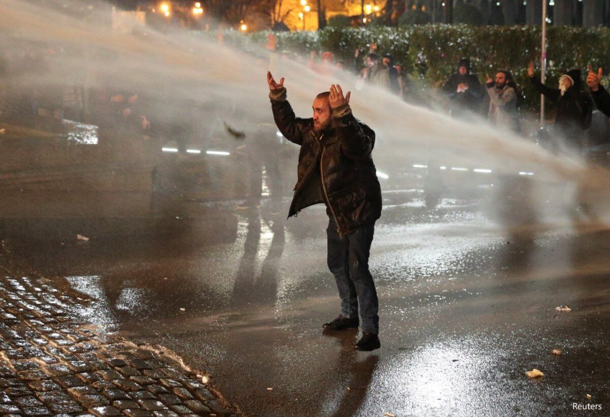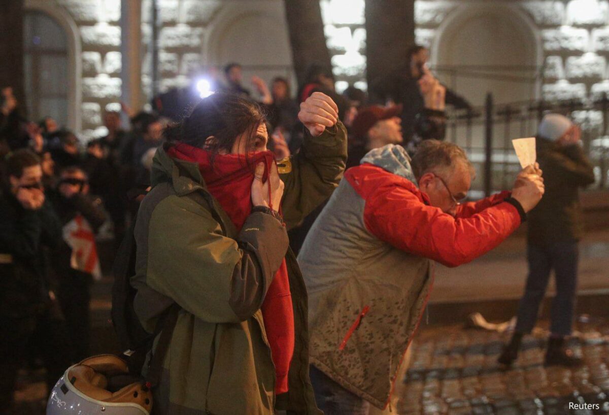 Уночі з 7 на 8 березня учасники мітингу намагалися прорватися до будівлі парламенту, але були розігнані поліцією. Грузинська поліція застосувала сльозогінний газ і водомети проти протестувальників. Учасники мітингу демонстрували російські цінники на новенькій уніформі грузинських поліціянтів, а сам протест одразу став яскраво антиросійським, адже, на думку його учасників, парламентарі продалися росії та реалізують інтереси москви. Мітингарі співали український гімн, кричалку «путін – х..ло», тримали державні Прапори України.