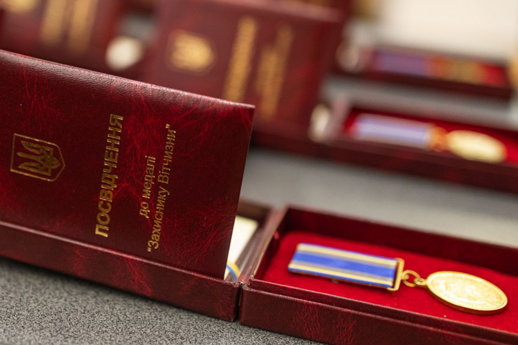 Президент України нагородив українських військовослужбовців медаллю «Захиснику Вітчизни» — за особисту мужність і самовіддані дії, виявлені у захисті державного суверенітету та територіальної цілісності України, вірність військовій присязі.
