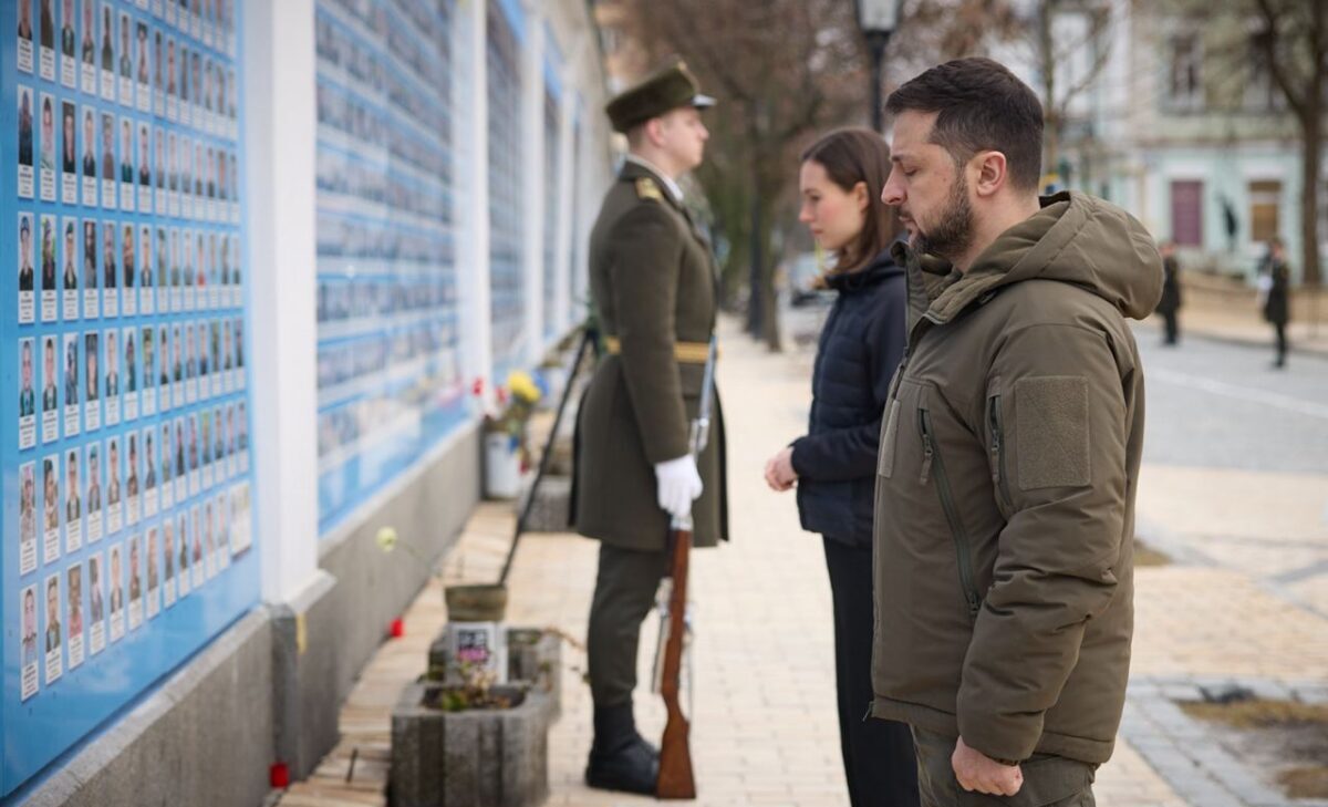 Президент України Володимир Зеленський і Прем’єр-міністр Фінляндської Республіки Санна Марін, яка перебуває в нашій країні з візитом, поклали квіти до Стіни пам’яті загиблих за Україну, що біля Михайлівського Золотоверхого собору.
