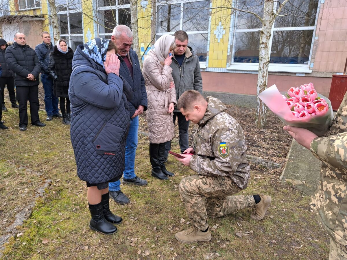 — Жодна відзнака і нагорода не повернуть близьких та найдорожчих, але нехай вона стане свідченням відваги, мужності та самопожертви Героя. Наше завдання — зробити все, що в наших силах, щоб ніхто не був забутим, а ім’я кожного Героя щоб залишалось у пам’яті прийдешніх поколінь, — зазначив офіцер, ставши на коліно перед згорьованою матір’ю полеглого воїна.