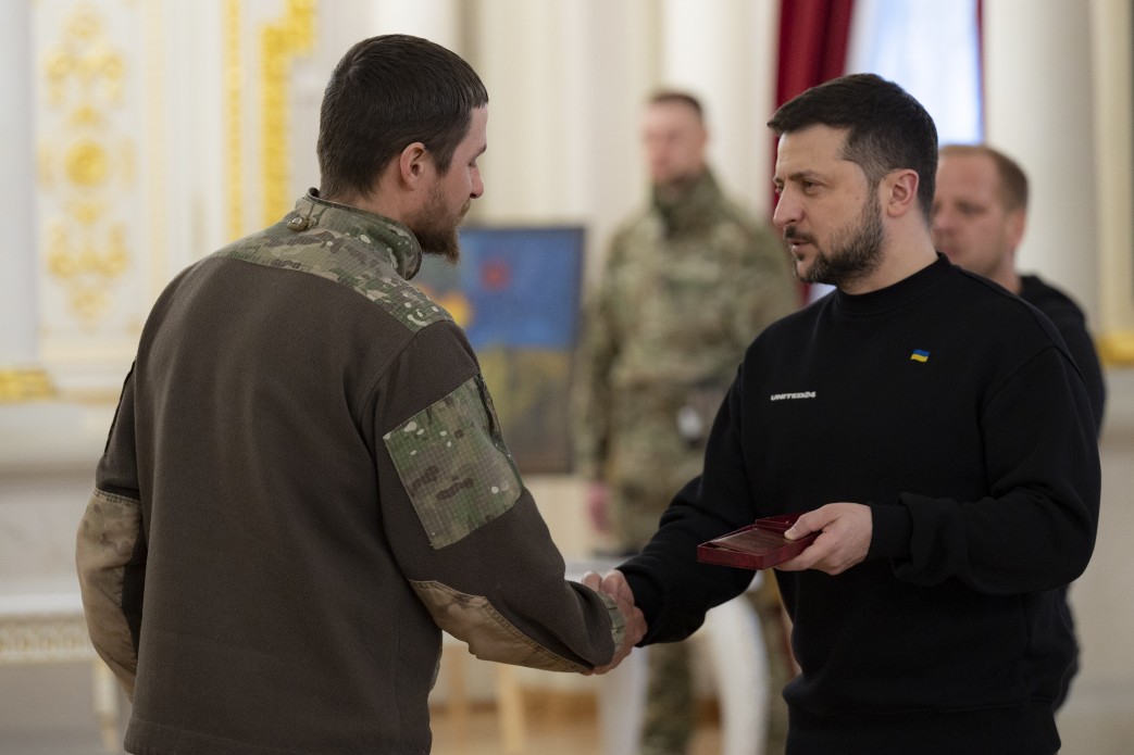 У День українського добровольця Президент Володимир Зеленський зустрівся з воїнами, які стали на захист України у складі різних бойових підрозділів. Глава держави вручив військовим та рідним загиблих захисників високі державні нагороди.