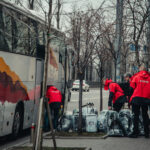 Перед відправкою команда зробила традиційне фото біля пам’ятника Михайлу Грушевському. Знімок вийшов дуже символічним, адже в умовах війни монумент закритий від можливих руйнувань.