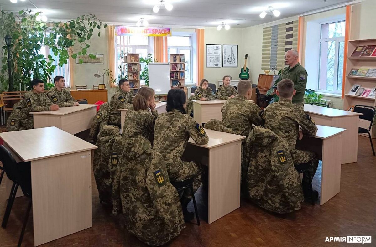 У Міській бібліотеці Криворізької міської ради відбувся тематичний захід, присвячений героїзму українських воїнів у визвольній боротьбі проти російських окупантів. На військово-патріотичний екскурс запросили вихованців місцевого ліцею з посиленою військово-фізичною підготовкою.