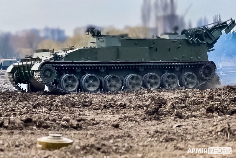 Поспілкувавшись із саперами, ми йдемо на звуки працюючої техніки. За декілька десятків метрів підрозділ інженерного забезпечення відпрацьовує викладку мінних полів за допомогою ГМЗ-3.