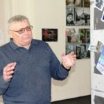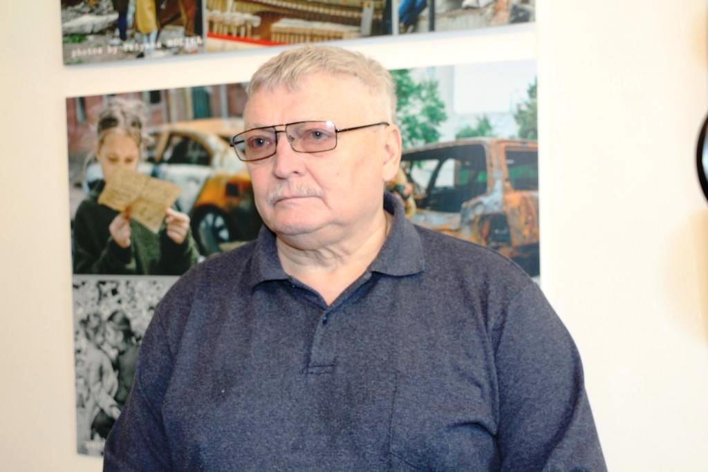 — Це переважно речі з перших днів широкомасштабного вторгнення на нашу землю, — каже автор виставки, голова правління громадської організації «Пласт-Арт» Борис Дєдов. — У результаті обстрілів залишалися уламки від ракет та снарядів, які представлені на виставці. Також тут є близько 500 світлин різних авторів. Досить незвично на виставці оформлені й стелі — паперовими журавликами, що символізують душі загиблих у цій війні дітей.