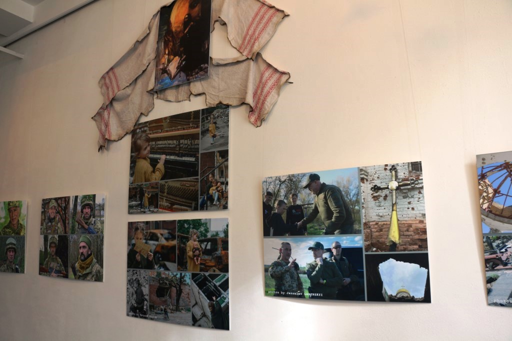 Представлена на виставці й банер-сітка, де зображена карта ведення бойових дій в області. Також є дуже багато дитячих малюнків, які потрапили на виставку з бомбосховищ Чернігова. Адже, попри постійні обстріли та бомбардування, діти малювали сонце та природу, сподіваючись на мир та спокій.