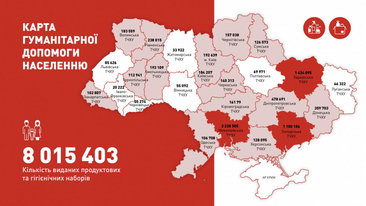 — Наприклад, з 24 лютого минулого року ми роздали українському населенню понад 8 мільйонів запакованих у коробки гуманітарних наборів. Якщо поставити ці набори в ряд, то утвориться ланцюг завдовжки понад 3200 кілометрів шляху. До прикладу, це дорівнює відстані від Ужгорода до Луганська та у зворотному напрямку.