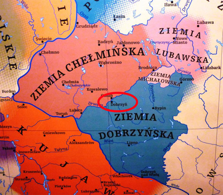 — Добжин — це місто в Мазовецькій землі Польщі, центром якої зараз є Варшава. Утім, в той час Варшава не була головним містом Мазовії, вона виникла пізніше, головну ж роль відігравав Плоцьк. А Добжин був прикордонним містом, форпостом у боротьбі проти прусів. Тому цілком зрозуміло, що саме Добжин було обрано за штаб-квартиру рицарського ордену, створено як з метою оборони польських рубежів, так і експансії на сусідні землі.