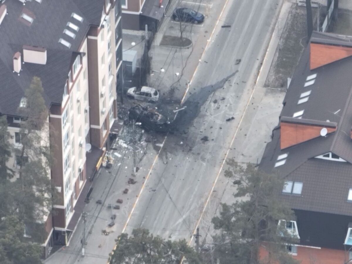 Цю ворожу колону, якщо не помиляюсь, 3 березня ми виявили з БПЛА. Я був на позиції в Бучі й наші розвідники за допомогою дрона побачили колону, яка почала шикуватись якраз у бік заводу скловиробів.