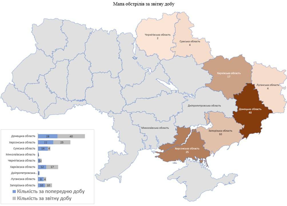 За наданою Ситуаційним центром Міністерства оборони України інформацією, протягом минулої доби російські війська обстріляли територію 7 областей України.