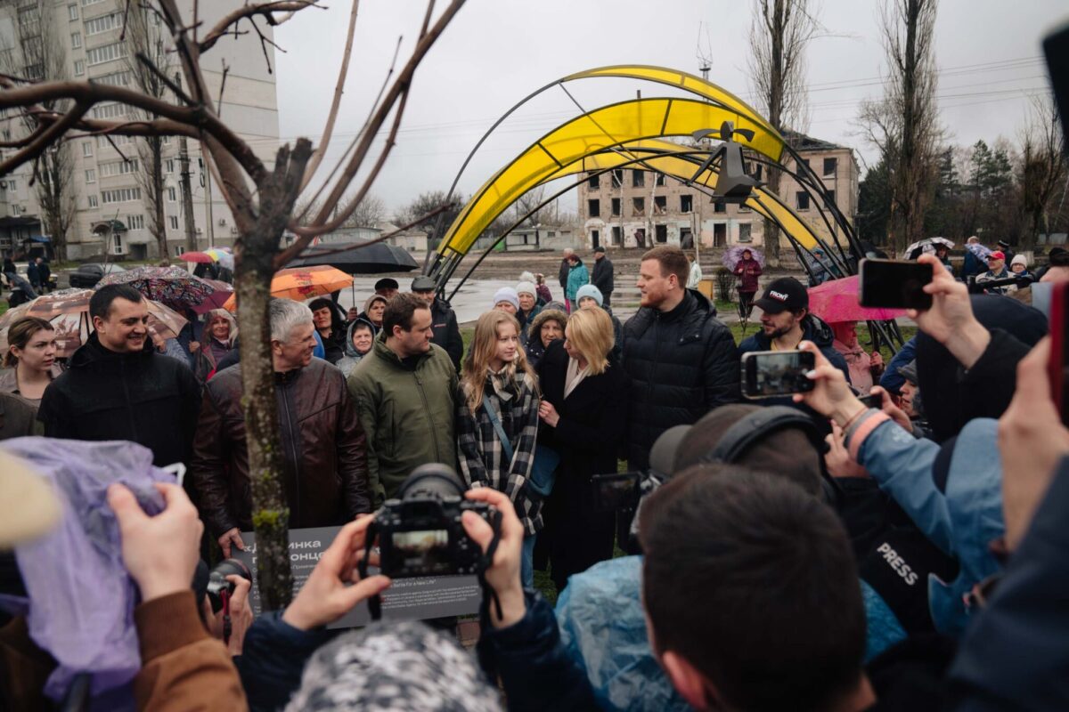 Це фото (дівчинки. — Ред.) — документальне свідчення, що життя перемагає смерть — це потужний контраст. І фото стало натхненням для скульптури, яку ми сьогодні відкриваємо. Це символ нашого опору, спротиву та нескореності. І, звичайно, не лише Київщини, але й всієї України», — зазначила Ірина Славінська.