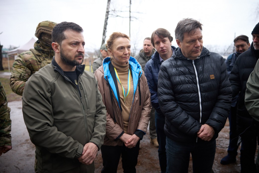 Під час робочої поїздки в Чернігівську область Президент України Володимир Зеленський разом із віце-канцлером, міністром економіки та захисту клімату Німеччини Робертом Габеком і Генеральним секретарем Ради Європи Марією Пейчинович-Бурич оглянули наслідки окупації російськими військами села Ягідного та скоєних ними воєнних злочинів.