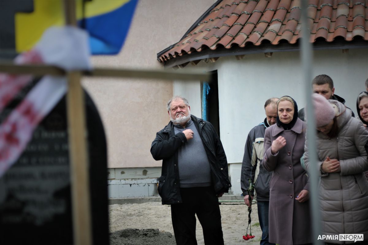 — З іншої сторони церкви йшли танки. Мій син зробив перший постріл, і після цього я його не бачив. Я шукав його тіло, все тут обходив, рискав усюди, та не знайшов. Як пізніше виявилось, він лежав у двох метрах від мене, — розповідає чоловік. Час від часу, його скляні очі мокріють, він робить паузу у своїй розповіді, видихає, та продовжує, — Яким він був? Він був байкером. Дуже відомим на Хмельниччині. А ще, служив я в 95-тій бригаді, був на Луганщині, а синові ще не виповнилося вісімнадцяти років, коли він казав, що хоче служити. Я казав йому, що рано. Але він був дуже серйозно налаштований, казав, що втече з дому, та все одно піде служити. І коли став повнолітнім, пішов. А потім ми стали служити вдвох.