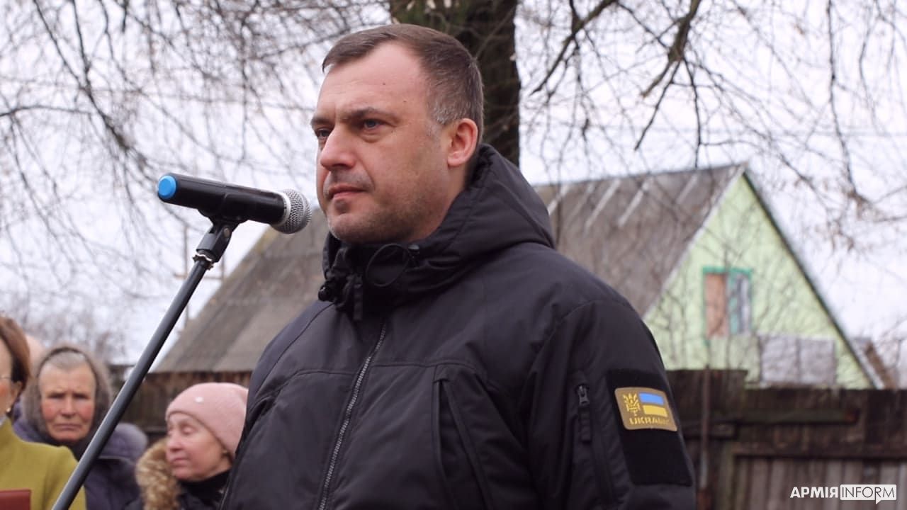 Вадим Токар, Макарівський селищний голова, у своїй промові каже: