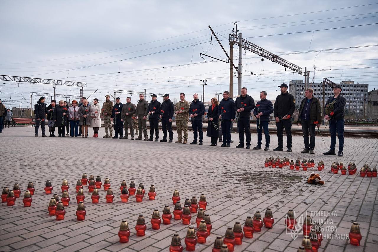У Краматорську на Донеччині вшанували пам’ять загиблих внаслідок російського ракетного обстрілу залізничного вокзалу рік тому.