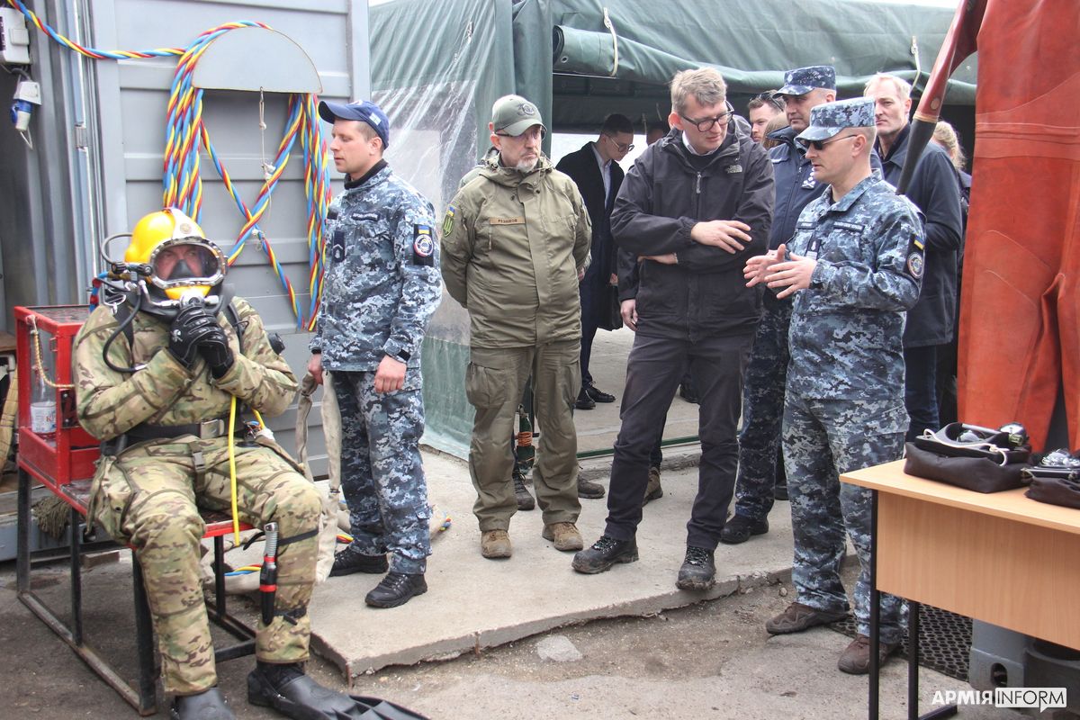 Пізніше відвідали майданчик для спусків під воду, де оглянули зразки сучасного обладнання та спорядження водолазів. Серед представлених засобів данську делегацію особливо зацікавило обладнання, яке свого часу їх країна передала Україні та досвід українських фахівців щодо його використання.
