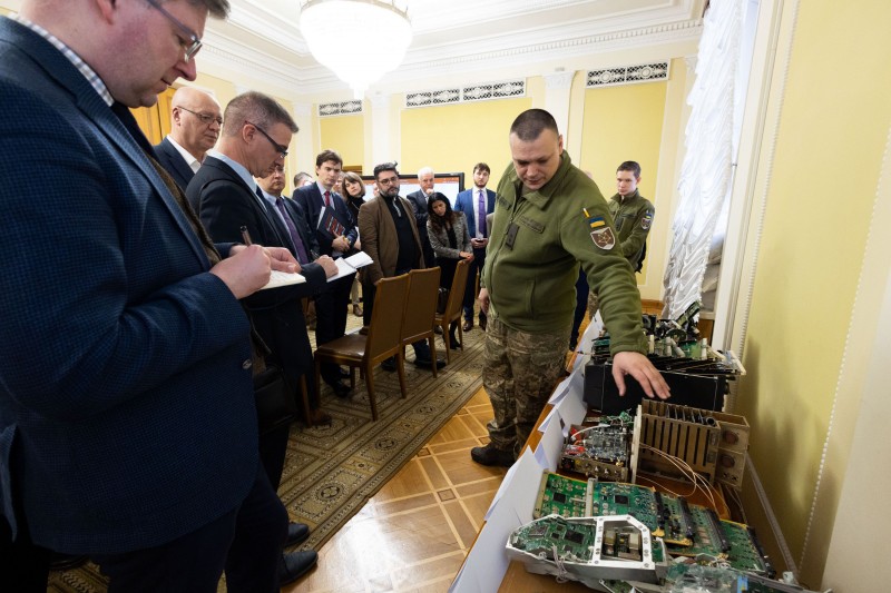 На завершення заходу за сприяння Центрального науково-дослідного інституту озброєння та військової техніки Збройних Сил України продемонстрували спеціальну експозицію, де представники дипломатичних місій країн ЄС змогли ознайомитися з рештками знищеної російської військової техніки, які містять елементи електроніки та побутової техніки західного виробництва.