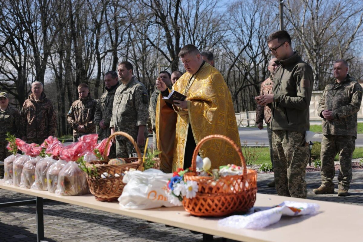 — Ми долаємо темні часи. Ми боремося за світлу ідею. На світлій стороні. І на нашому боці — правда, люди, Господь і вище небесне сяйво. Ці паски, отримають наші захисники, ми хочемо передати їм частинку нашого тепла, щиру подяку, підтримку, молитву та надію. Нехай цей святковий хліб — символ життя, сили духу, воскресіння — стане промінцем радості та світла серед мороку війни та смерті, — зазначив військовий капелан.