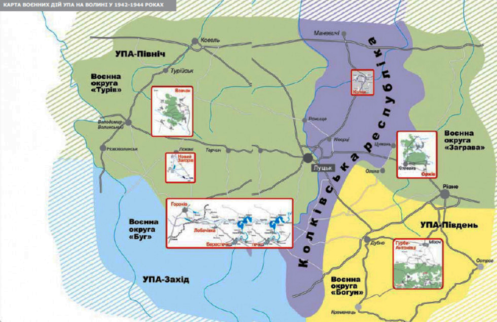 Можна згадати Антоновецьку республіку на південній Волині з центром у селі Антонівці, що на півночі Тернопільської області, Корецьку республіку з центром у селі Топча в Корецькому районі Рівненської області або так звану Січ на північний схід від міста Володимир-Волинський у Свинаринському лісовому масиві. Республіки — це умовна назва для таких територій, визволених з-під контролю німецьких окупантів. Їх не проголошували офіційно, але фактично від моменту визволення вони вважалися повстанськими республіками.