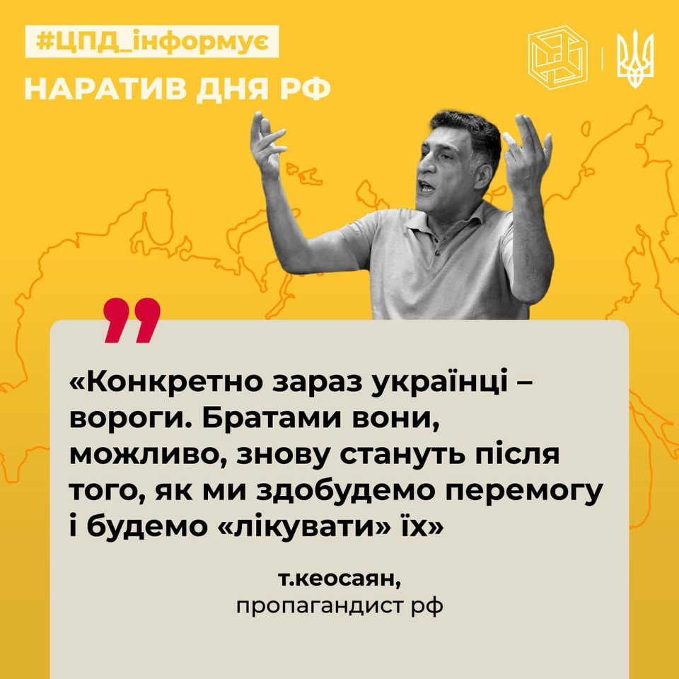 «Пропагандист кеосаян заявив, що із фразою «братній народ» щодо українців треба «зав’язувати». Вона нібито плутає людей.