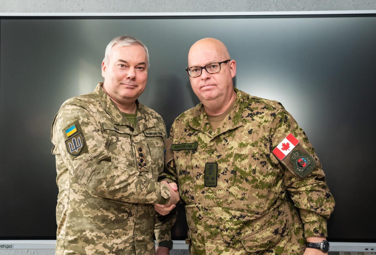 Командувач Об’єднаних Сил Збройних Сил України генерал-лейтенант Сергій Наєв провів робочу зустріч із командувачем Об’єднаних Сил ЗС Канади віцеадміралом Бобом Очтолоні, під час якої обговорили відновлення співпраці з представниками тренувальних місій ЗС Канади.