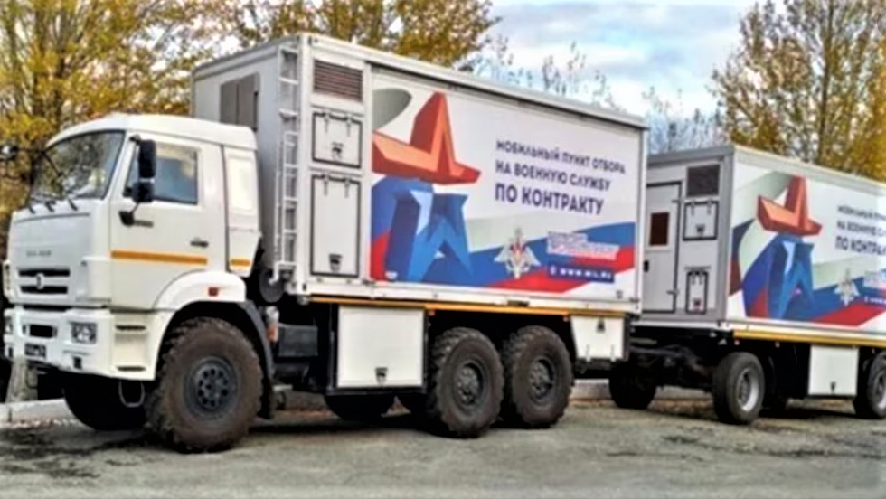 Широко використовуються на росії мобільні агітаційні пункти. У Камишині Волгоградської області такий пункт відвідали 500 студентів. Пункти набору на військову службу відкриті також в Уфі, Омській, Курській, Новосибірській областях та інших регіонах.