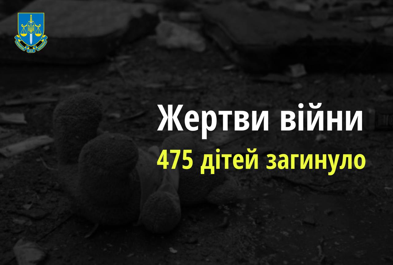 Станом на ранок 29 квітня 2023 року більше ніж 1428 дітей постраждали в Україні внаслідок повномасштабної збройної агресії рф. За офіційною інформацією ювенальних прокурорів 475 дітей загинули та понад 953 отримали поранення різного ступеню тяжкості.