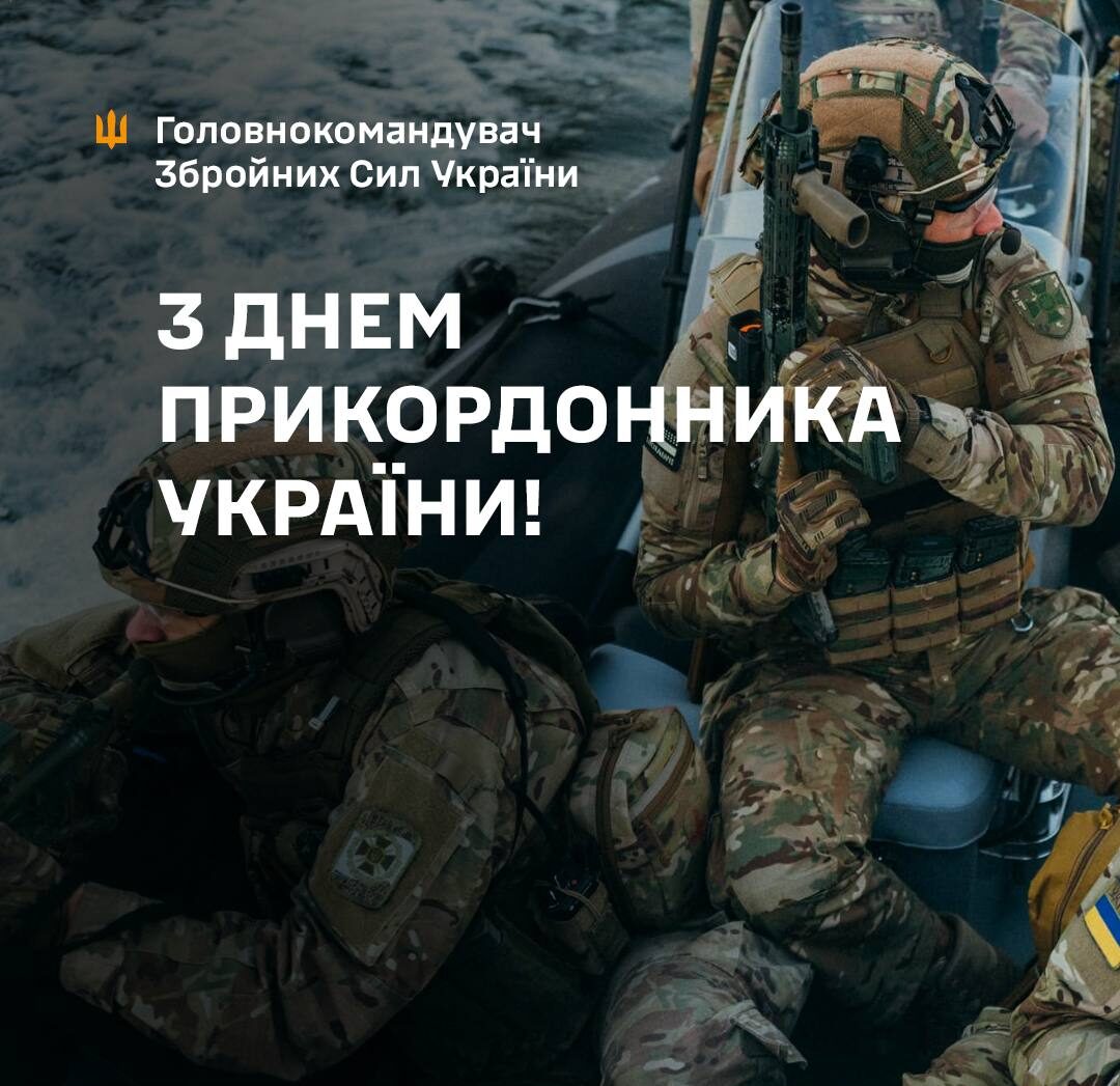 Головнокомандувач ЗСУ генерал Валерій Залужний привітав військовослужбовців Державної прикордонної служби України з професійним святом.