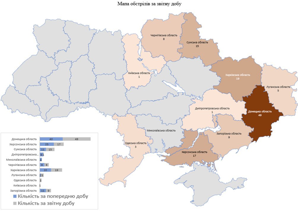 «Загалом із різних видів озброєння (міномети, танки, артилерія, РСЗВ, ЗРК, БПЛА, стратегічна та тактична авіація) здійснено обстріли 127 населених пунктів, підтверджено ураження 139 об’єктів інфраструктури», — йдеться у повідомленні.