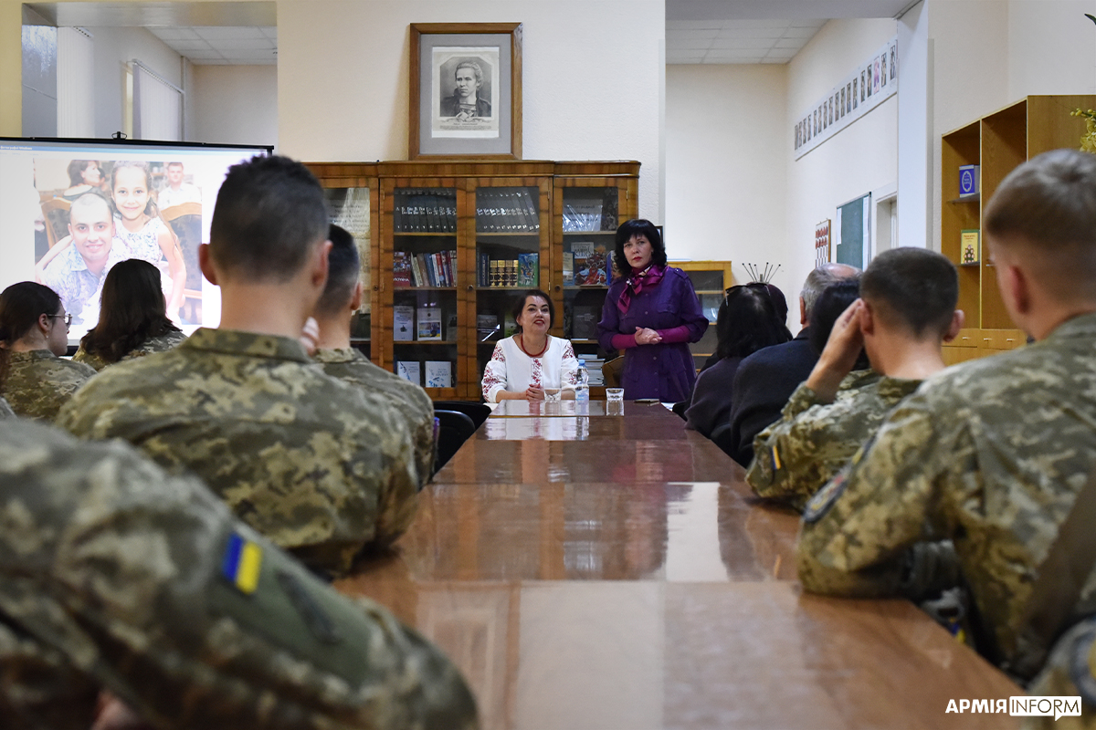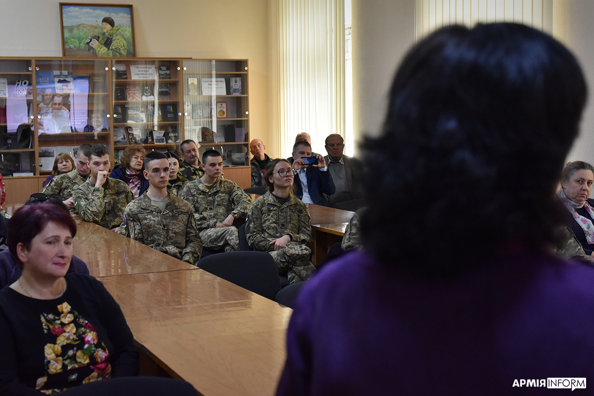 Почесною гостею заходу стала Наталія Дубчак — мати молодшого сержанта Олександра Єрошенка, який загинув у 2015 році під Дебальцевим. Вона розповіла присутнім історію своєї родини та про бойовий шлях свого сина.