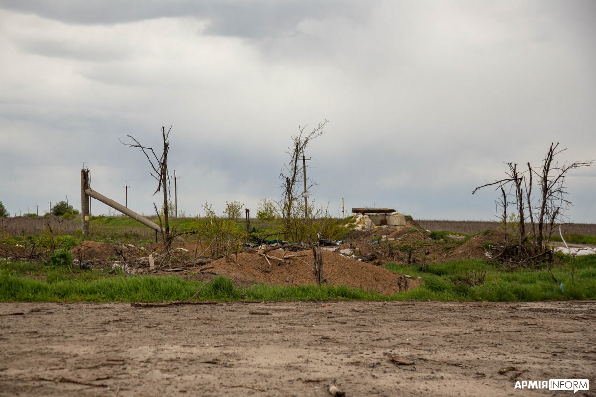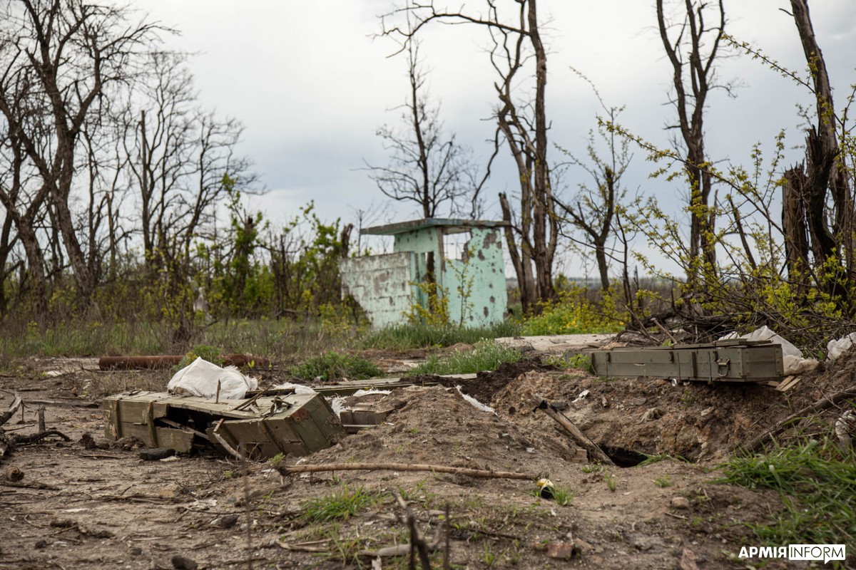 А ось щойно потрапляєш на місце колишніх боїв, куди ще не дісталася служба автодору, розумієш, що впродовж кількох місяців тут відбувалося пекло. Покриття асфальту розтрощене вщент, а дерева, які стояли обабіч дороги, зрізані снарядами до половини; не вцілило жодного бетонного електричного стовпа, навколо розкидані ящики від боєприпасів… До самих позицій спуститися не наважуюся, розуміючи, що тут і досі можна натрапити на міну або нерозірваний наряд. Теж стосується і пересування дорогою — веду машину ближче до центру дорожнього полотна.