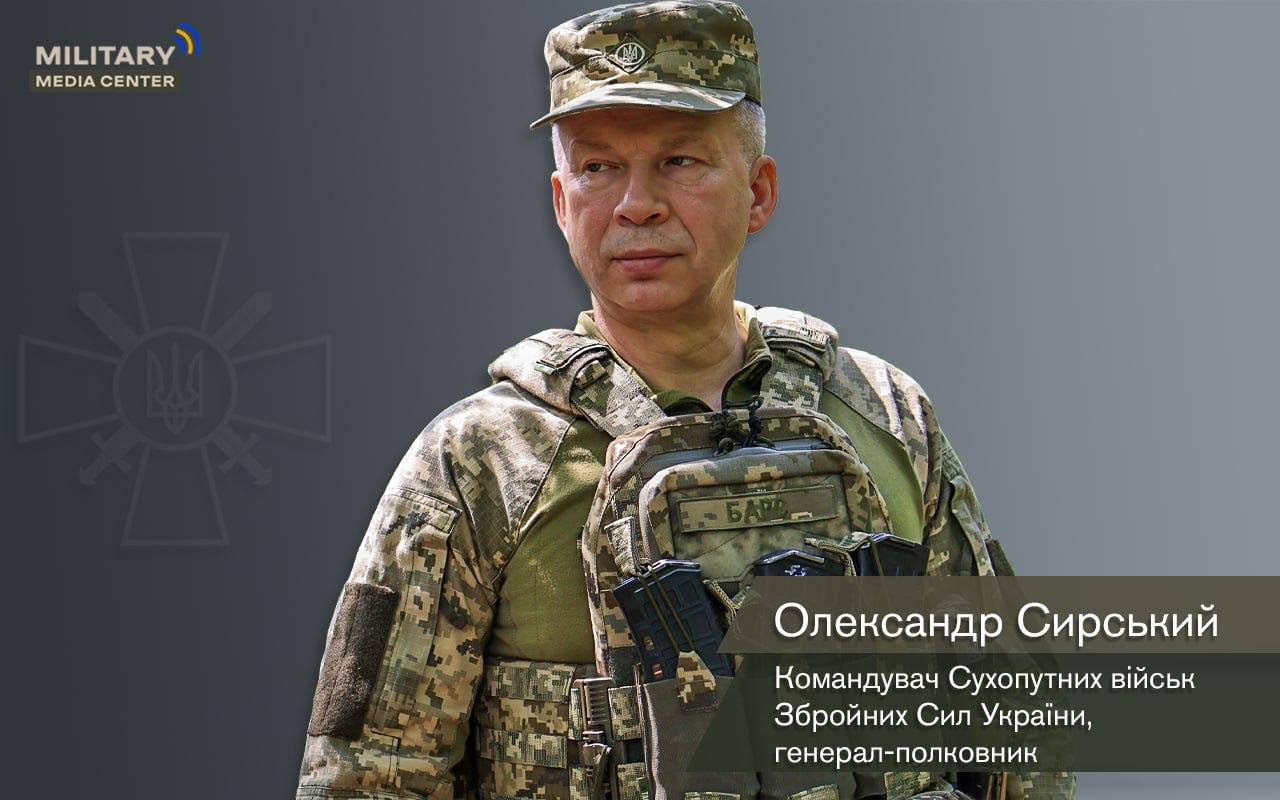 «Останні кілька днів показали, що ми можемо рухатись вперед та нищити ворога навіть у таких надскладних умовах. Ми воюємо меншим ресурсом, ніж ворог. Разом з тим, нам вдається руйнувати його плани. Все завдяки нашим бійцям, які б’ються з агресором, долаючи найвищу межу людських можливостей», — наголосив генерал-полковник Олександр Сирський.