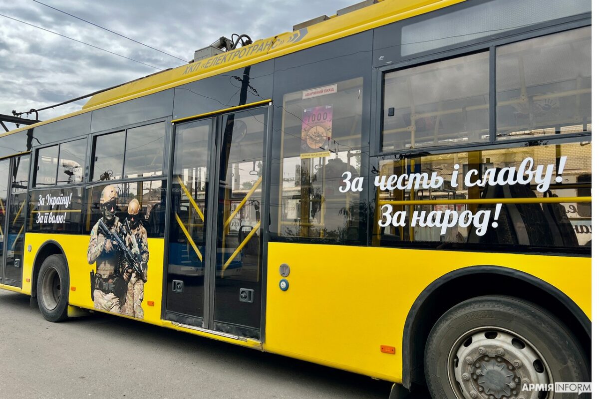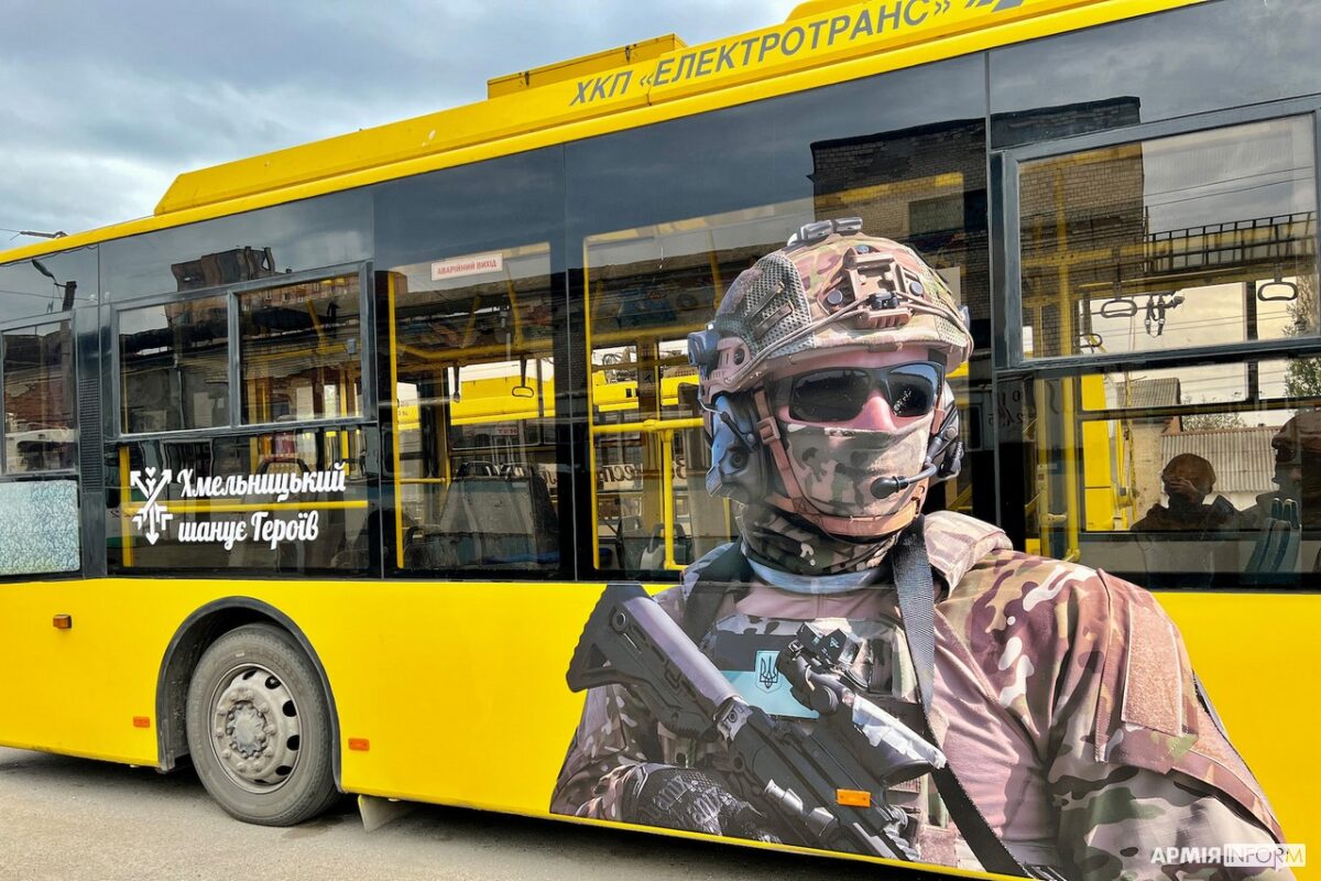У Хмельницькому комунальне підприємство «Електротранс» запустило до Дня Героїв тролейбус «Шани Героїв та дитячої мрії». Ззовні він брендований зображеннями українських захисників, а всередині розміщені малюнки-мрії дітей, які вимушені були разом із батьками залишити свої домівки через бойові дії, та учнів Хмельницької школи мистецтв «Райдуга», чиї батьки захищають Україну від російських загарбників.