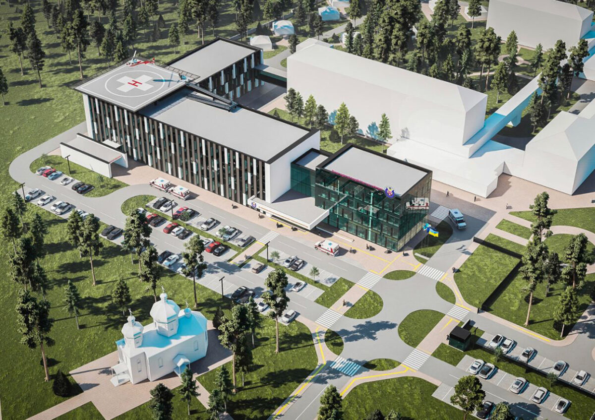 Фото автора та з проєкту будівництва нового лікувального корпусу