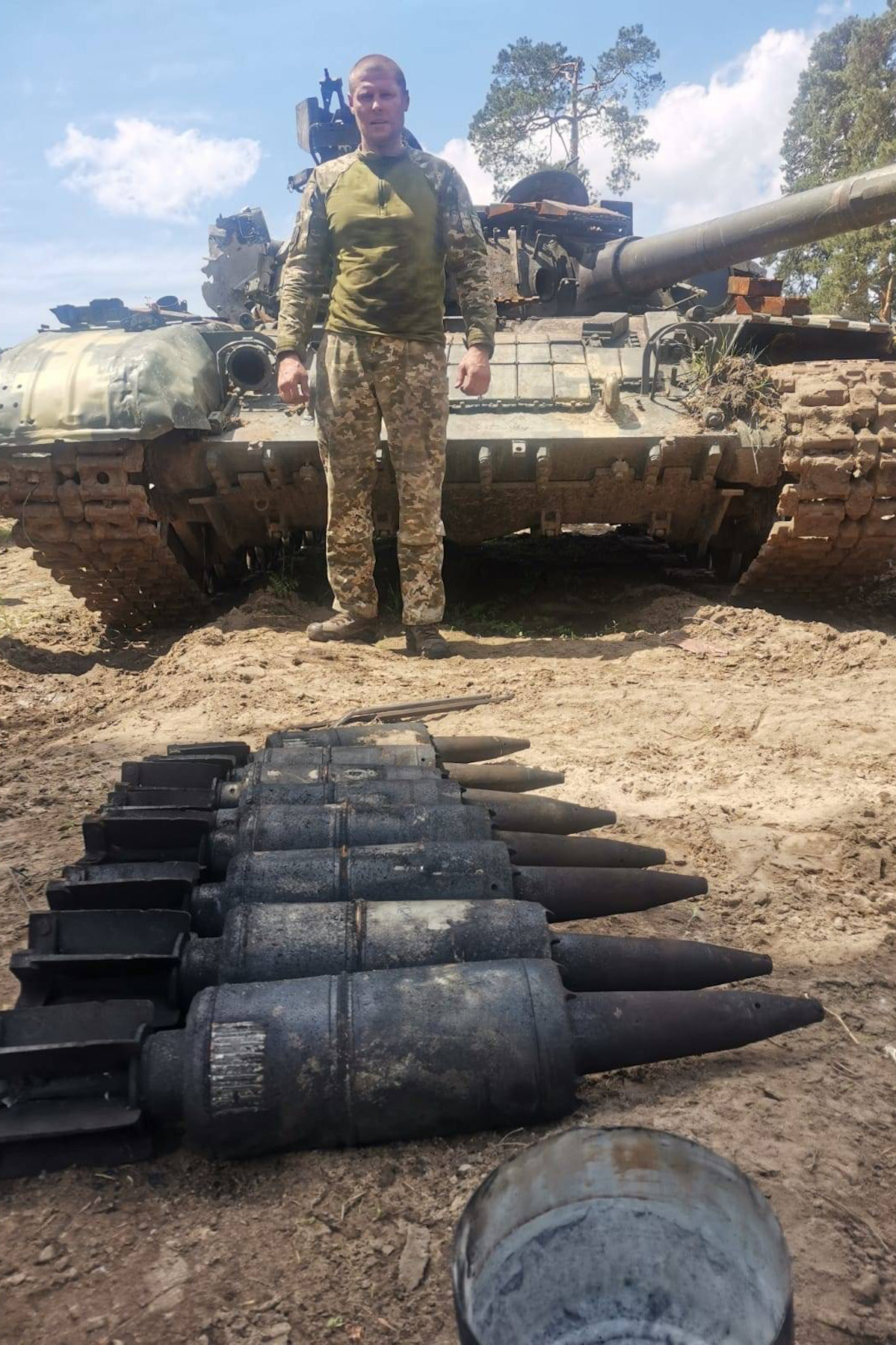 Я взяв інструменти, заліз і почав відрізати ці лотки з боєприпасами, і мені вдалося змусити механізм зарухатися. Повністю повідкручував підривники, як виявилось, весь боєкомплект цього танка було знешкоджено, і я звідти дістав усе вже на безпечне місце, — розповідає офіцер.