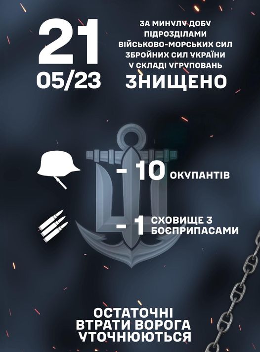 Військові частини та підрозділи Військово-Морських Сил Збройних Сил України, у складі угруповань продовжують виконувати завдання щодо відсічі повномасштабної збройної агресії російської федерації.