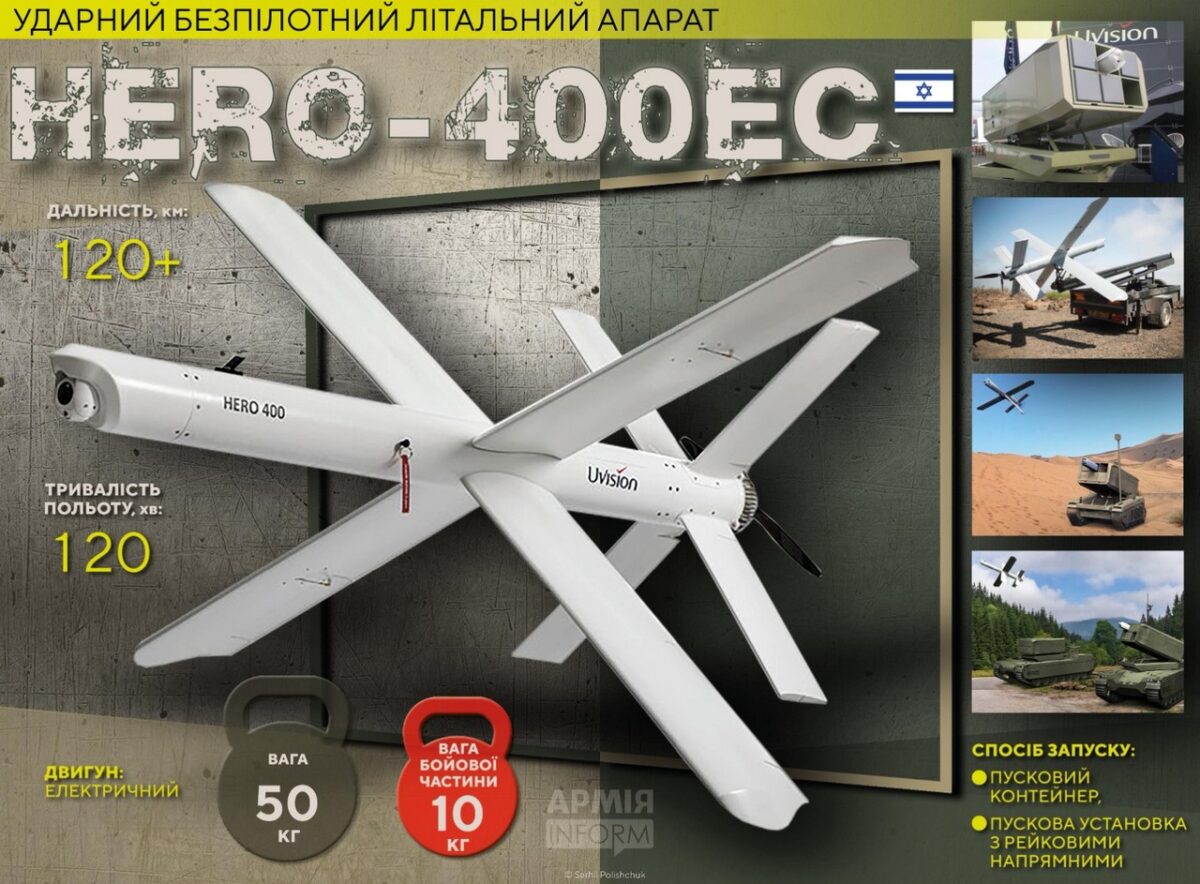 Перемагати противника не людськими ресурсами, а сучасними технологіями — приблизно так можна визначити концепцію бойових операцій, які перманентно проводить Ізраїль. Тамтешній військово-промисловий комплекс постійно прагне розвивати такий напрямок озброєння, як бойові дрони для заміни пілотованих літальних апаратів з метою зниження ризику для життя людей. Ізраїль — другий після США виробник безпілотників і посідає перше місце по експорту БПЛА. Його фірми продають їх понад пів сотні державам, і 80% вироблених в Ізраїлі безпілотників йдуть на експорт. Однією з таких моделей є дрон-камікадзе HERO-400EC.