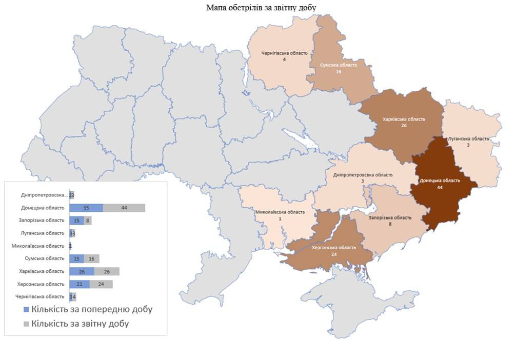 «Здійснено обстріли 129 населених пунктів та 101 об’єкту інфраструктури», — йдеться в повідомленні.