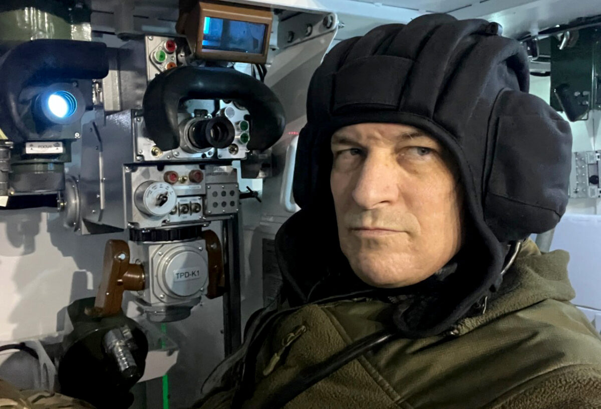 Вправа почалась. Вдивляюсь у чорно-біле поле окуляра, доки не побачив: щось рухається, причому до мене. Розпізнаю ціль — то БТР. Гармата «заряджена», далекомір видає відстань — 3,2 тисячі метрів. Чекаю, доки підійде трохи ближче. Постріл! Кабіна тренажера відчутно здригається, отримую по налобнику шоломофона відчутний поштовх…