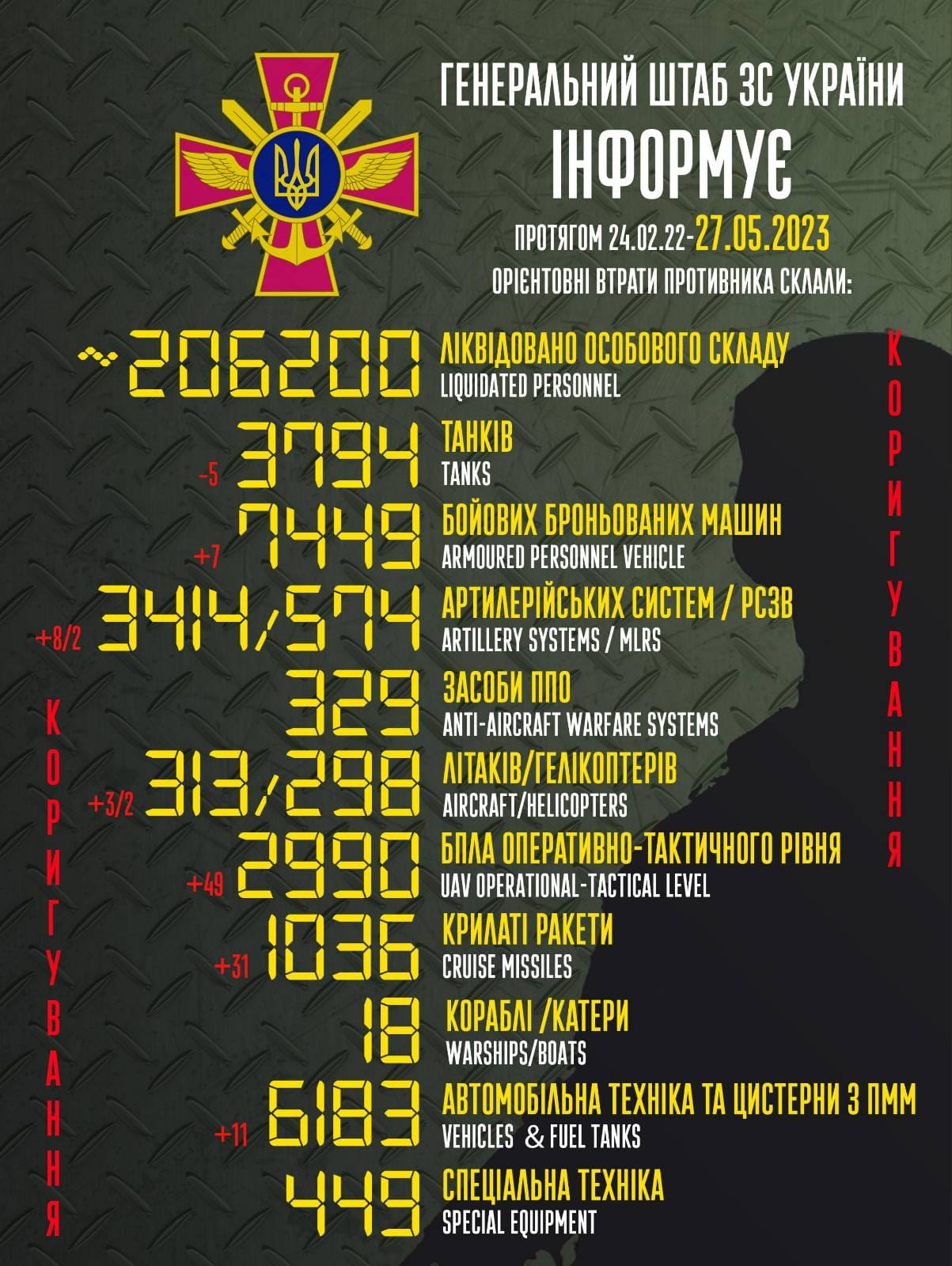 Завтра, до цих, ВЖЕ СКОРИГОВАНИХ ЦИФР, будуть додані втрати ворога за попередню добу.