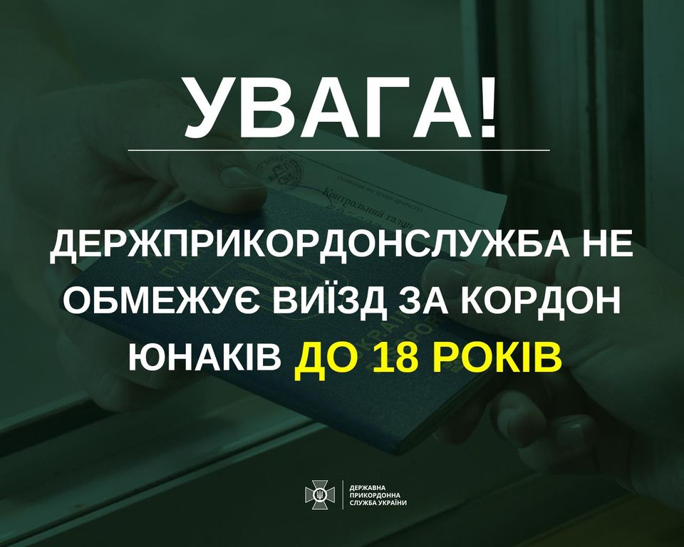 Державна прикордонна служба України на своїй офіційній сторінці у Facebook внесла розʼяснення з приводу появи на інформаційних ресурсах повідомлень щодо заборони виїзду з України 17-річним юнакам.