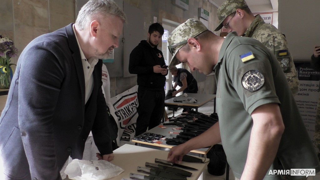Втім, не можна оминути і окремо не сказати про саму холодну зброю, яку привезли для огляду та придбання вітчизняні ножові майстри. З їхніх слів, воїни-фронтовики давно відмовились від використання «шабель», що мають загрозливий вигляд, але ніякий функціонал. Натомість популярністю користуються моделі, що мають широкий спектр практичного застосування, як для побутових потреб вояка, так і у площині допоміжного інструмента в бойових умовах.