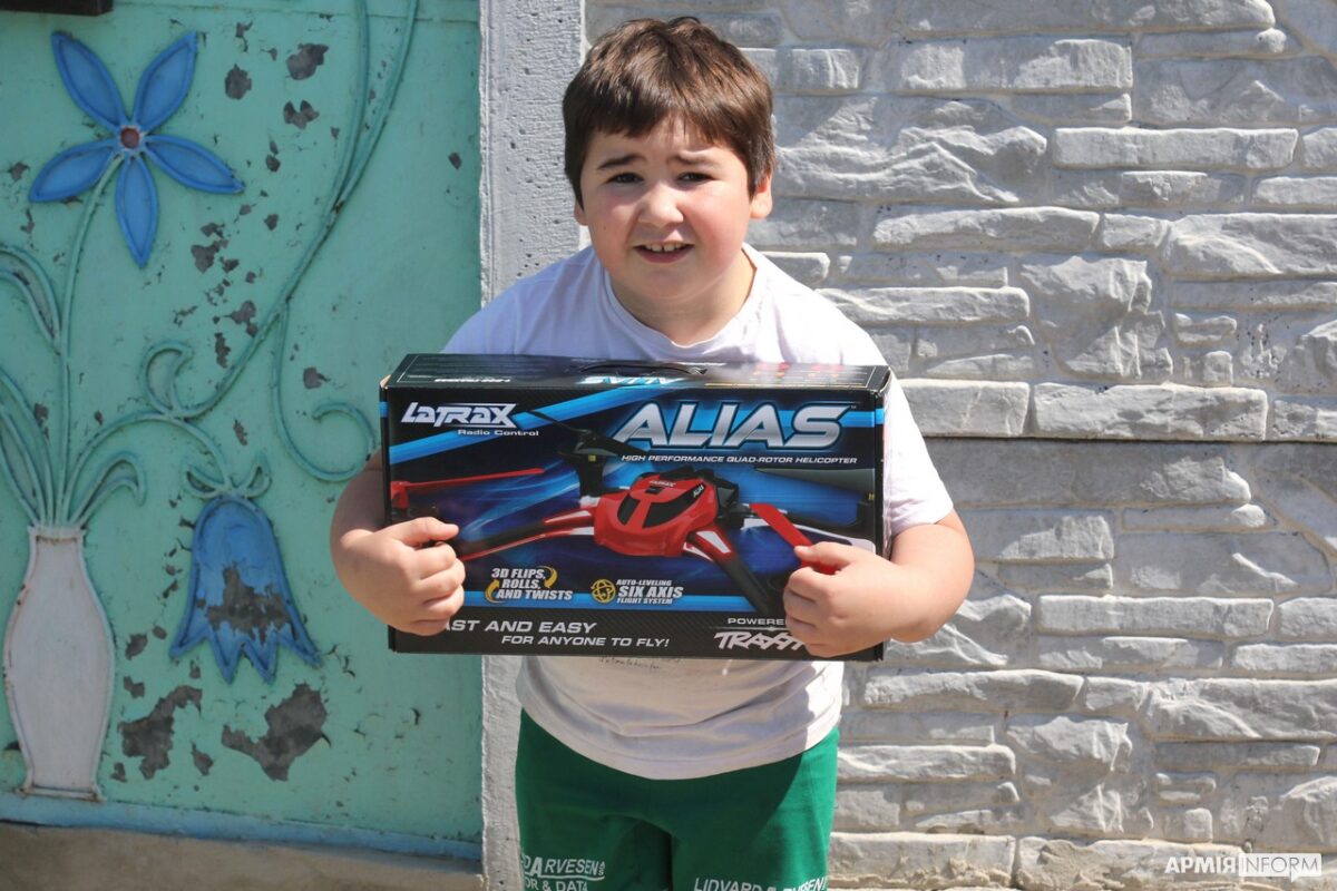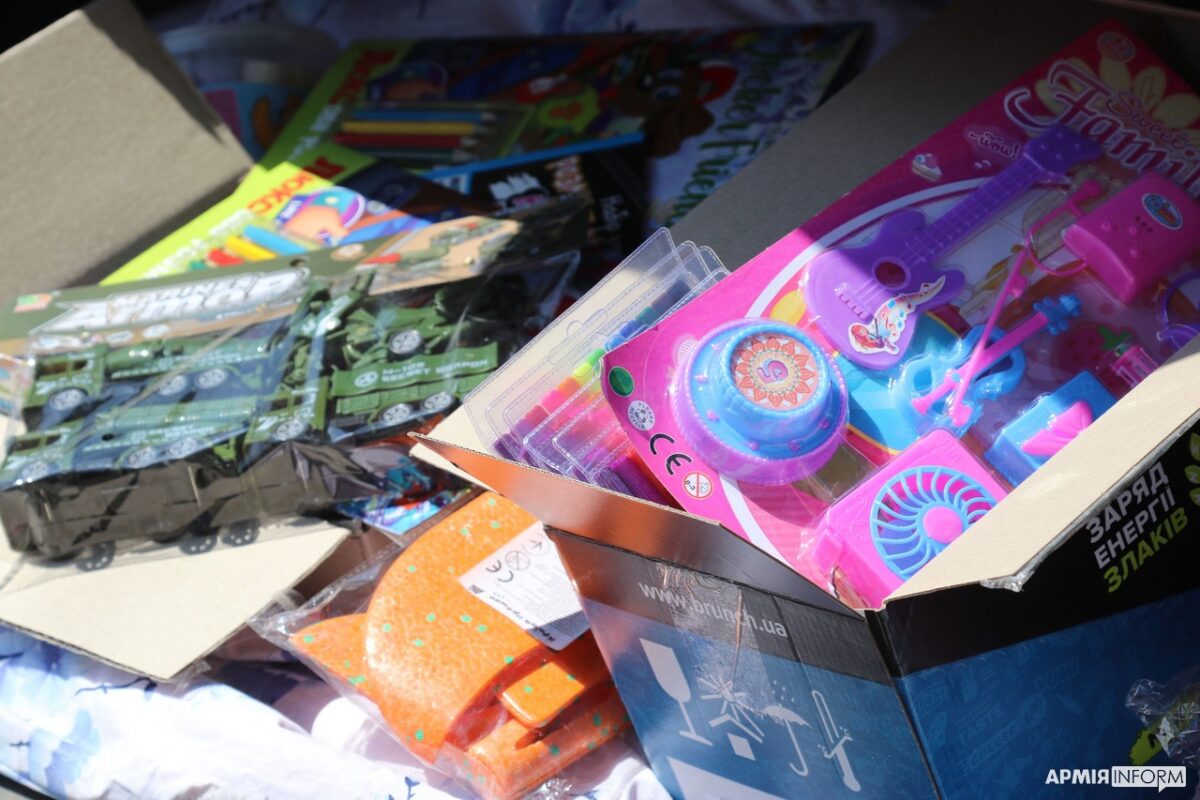 Серед іншого, цього дня від військових малеча отримала мобільні телефони, іграшкові квадрокоптери і літаки, ляльки, косметичні набори, шкільне приладдя, солодощі тощо.