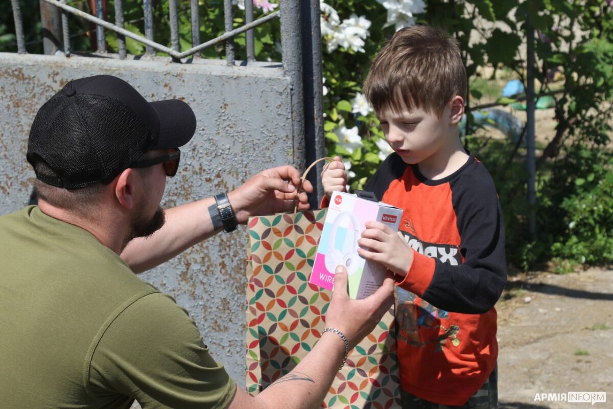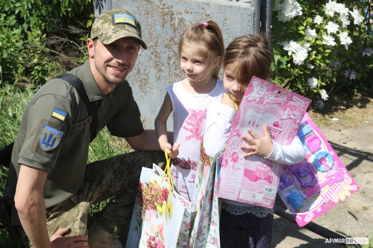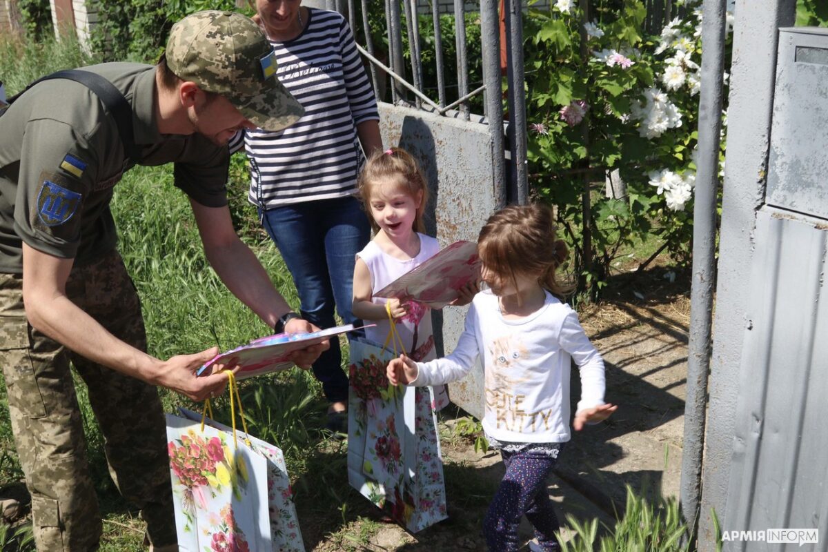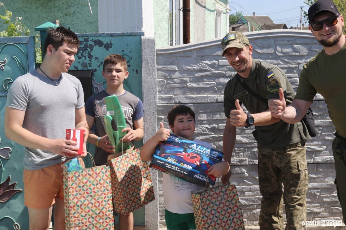 У День захисту дітей військовослужбовці однієї з бригад територіальної оборони, яка виконує бойові завдання на півдні країни, завітали з подарунками до хлопчиків та дівчаток, які мешкають в передмісті Херсона.