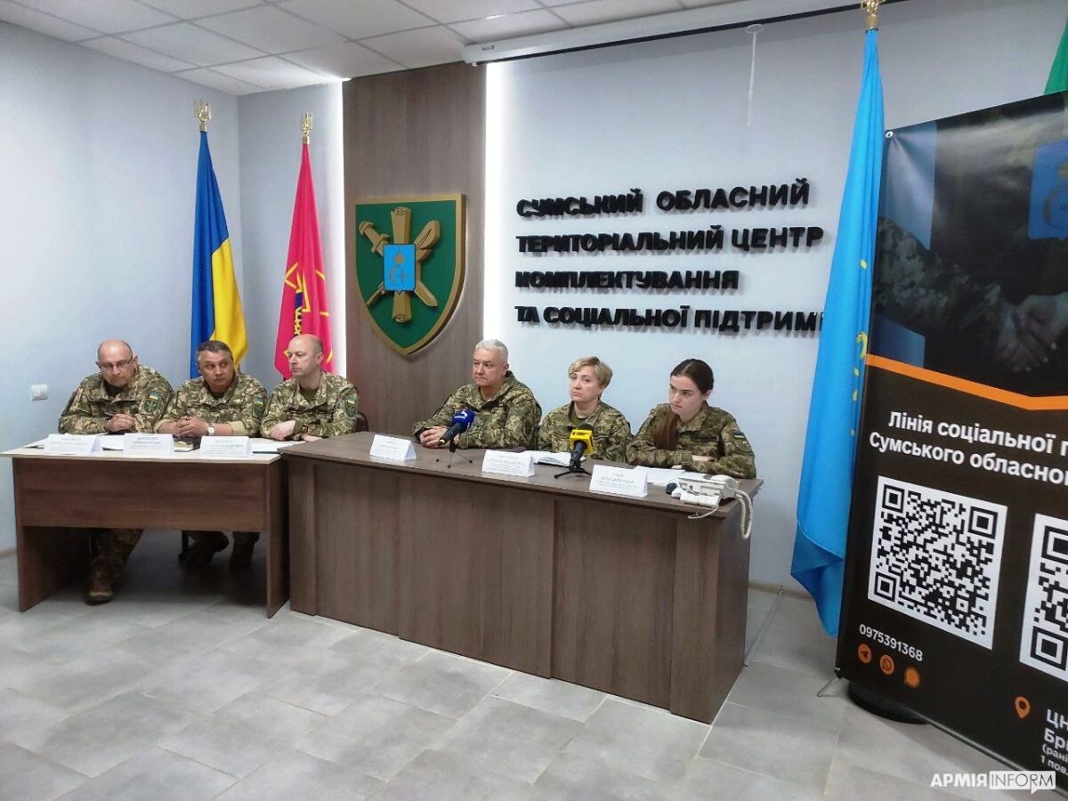 — Ми створили лінію соціальної підтримки у взаємодії із Сумською міською радою на базі місцевого Центру надання адміністративних послуг. Тож охочі можуть звертатися зі своїми зверненнями за адресою: м. Суми вул. Британська, 21, перший поверх, 2 зала, 25 робоче місце, де постійно перебуває спеціаліст обласного ТЦК та СП, приймає звернення і допомагає з вирішенням проблемних питань. Найбільш болючими питаннями наразі є призов по мобілізації, порядок надання відстрочок, військовий облік, кадрові військові питання, отримання статусу учасника бойових дій, умови проходження ВЛК, визначення придатності до військової служби, отримання одноразової грошової допомоги у разі загибелі та травмування, видача довідок для перерахунку військових пенсій тощо, — розповіла керівниця лінії соціальної підтримки Сумського обласного ТЦК та СП Юлія Гусак.